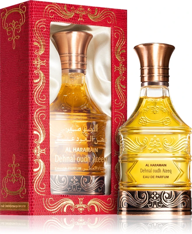 L’eau de parfum pour homme Al Haramain Dehnal Oudh Ateeq vous révèle tout le charme des senteurs orientales. Le secret et la pointe de mystère qui en rayonnent éveillent la curiosité de tous ceux qui vous entourent.