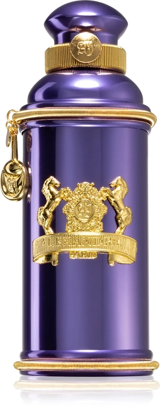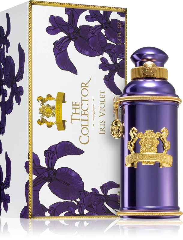 L’eau de parfum Alexandre.J The Collector: Iris Violet est venue compléter cette collection en 2015 avec son parfum célébrant la jeunesse et la fraîcheur de l’iris. Elle est présentée dans un flacon métallique assorti à la couleur violette, et décoré d’emblèmes et de chaînes.
