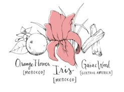Vous distinguerez tout d’abord le parfum floral de l’iris provenant du soleil du Maroc. Au cœur du parfum, c’est ensuite l’oranger africain – du Maroc, lui aussi – qui prend le dessus. La base de ce parfum, qui tient le plus longtemps sur la peau, est placée sous le signe des notes chaleureuses du bois de gaïac provenant d’Amérique centrale.