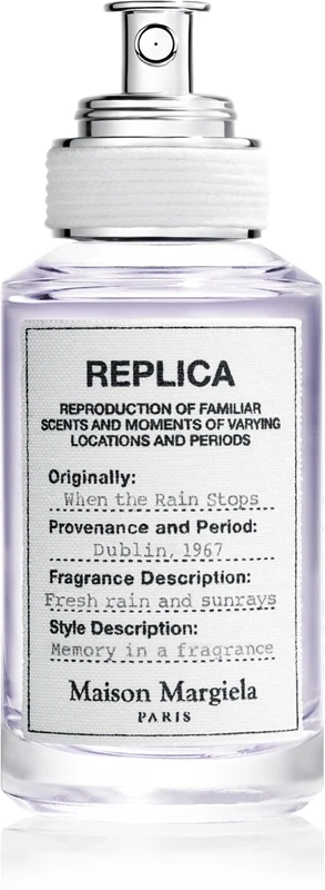 Le parfum Maison Margiela REPLICA When the Rain Stops, créé par la parfumeuse Fanny Bal, a le pouvoir de rappeler les instants où la pluie printanière cesse pour à nouveau laisser place à un beau ciel bleu. Cette composition olfactive unisexe dégage tout le plaisir que nous pouvons ressentir lorsque les premiers rayons chaleureux du soleil apparaissent.